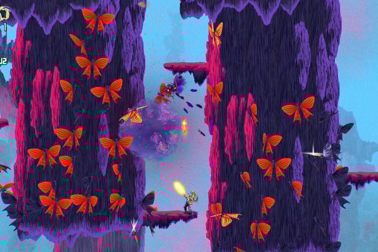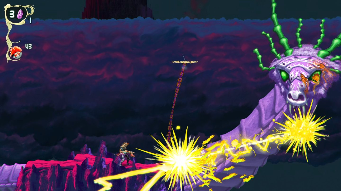 In keeping with retro games, the level design is incredibly linear, but MBG added a lot of vertical space using all kinds of objects to grapple with the Chainstaff. You’ll also encounter branching paths in each level that lead to a boss or other key items like Psychic Embryos or Star Spores.