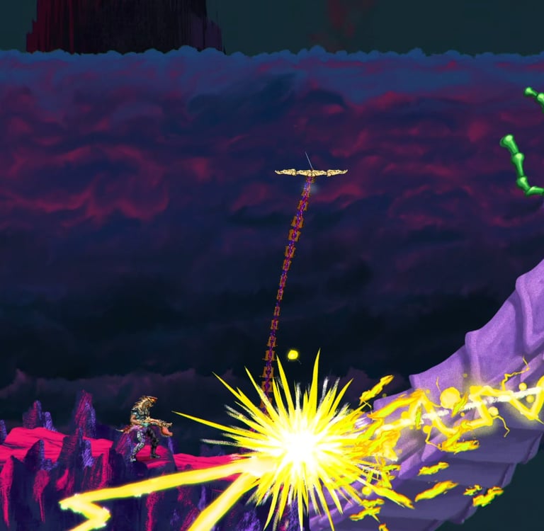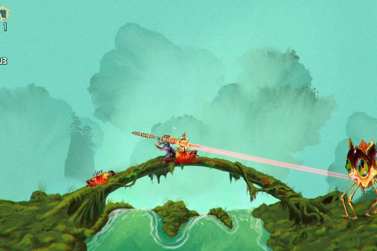 You know a game has you hooked when you pause mid-level just to play air guitar to the soundtrack. That was my experience with Chainstaff. I found myself vibing to crunchy, 80s-style metal riffs, the outlandish alien monstrosities coming at me, and the unique art style.