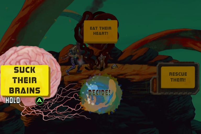 However, you also have the option to cannibalize your former colleagues by harvesting their heart or their brain to get a temporary boost in health or damage output. Doing it multiple times impacts which of the game’s 3 endings you get.