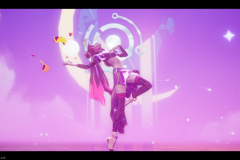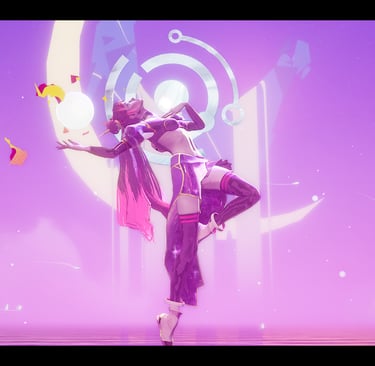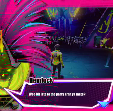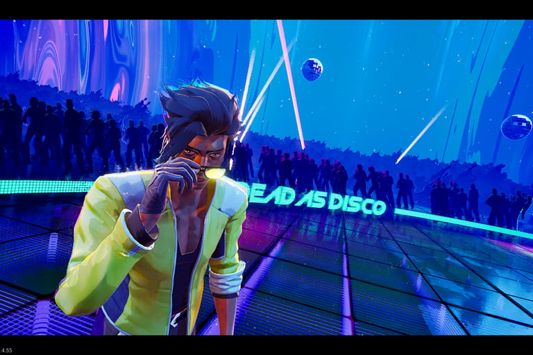 I've mentioned the art a couple of times, so I'll address it here. The game's tagline of "neon drenched" describes it perfectly. From the characters to the environments, everything oozes the feeling of a world painted with the inside of a glow stick. The lighting constantly shifts from daytime rave to blacklight darkness, but wherever you go, you and the boss are always the brightest things on the stage. The opening cutscenes are beautifully drawn and animated, and they left me craving more. My only qualm is with Arora's in game model. This may be intentional given the "army of dolls" theme she carries, but her model's neck and facial expressions feel a bit stiff during the in game cutscenes, as the face and neck don't move at all. The team does an amazing job showcasing her dancing ability and the taunts you can use mid fight, but after the beauty of the fight's intro, it left me wanting more. That said, resources are finite, and if the choice is between polishing cutscenes into full cinematics versus refining combat and adding more songs, I'll choose the music every time.
