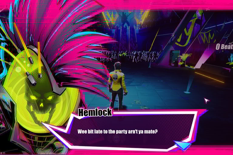 Here's my PSA: I am by no means a rhythm gamer. I love music, and it permeates my free time, but I have tried OSU, DJ Max Respect, Guitar Hero, Rock Band, and more, and I am horrible at all of them (my sense of timing always goes sideways and I have to reset). Fittingly, my favorite rhythm games tend to be the ones with unique concepts where the rhythm difficulty becomes almost secondary (Melatonin being my personal favorite). I have about 24 hours logged in the demo so far (about 4 of those in the beta) and have only managed to defeat Hemlock. I'm still working on Arora. The difficulty feels genuinely satisfying; being punished for mistiming is frustrating in the best way, which makes finally defeating a boss all the more rewarding. Difficulty options currently include Normal and Easy (I'm not aware of any planned Hard mode), and I've stuck to Normal so far out of respect for the devs' intended experience, though we'll see how many more face plants from Arora's mage staff it takes before I cave. I have friends who are true rhythm gamers whose sense of timing baffles me, and for those of you out there, Normal might actually feel too easy. But I think what this game really centers on is something simpler: it's fun. The concept, the vibe, and the gameplay all orbit the enjoyment of the process. The satisfaction of every punch and finisher, hitting the beats, absolutely demolishing NPC faces at key moments in a song for unique takedowns, that's what it's all about.