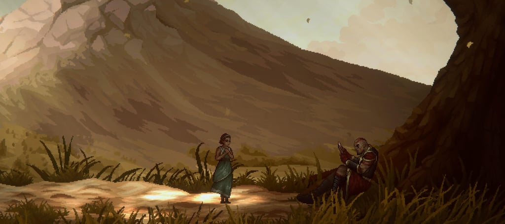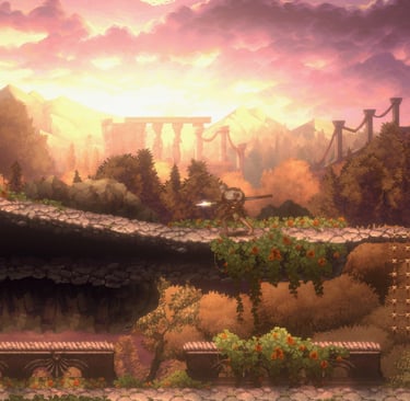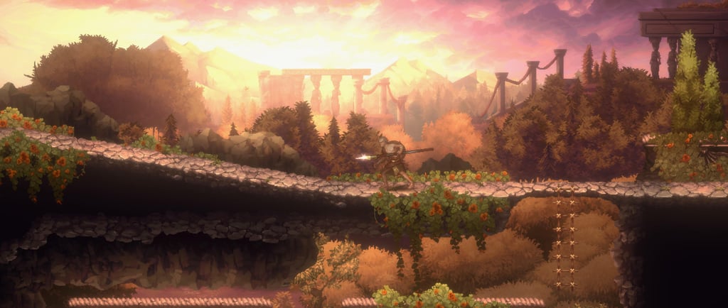 At first I thought the visuals were a bit one-note, but as you progress you're able to see a lot more variety and the detail and lighting in many areas of the game is beautiful. There's a conversation to be had about art style and use of color in 2D games, but what's here is still frequently very nice to look at. Overall, the game has an aesthetic that reminds me of Nickelodeon cartoons like Avatar: The Last Airbender, but I actually think that fits given the tone and framing of the game.