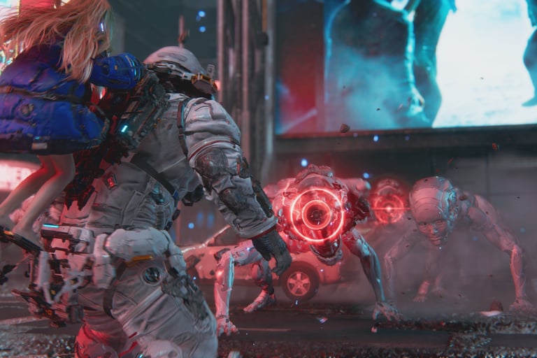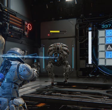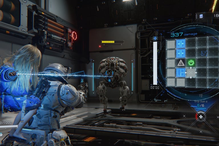 What makes Pragmata sing is how everything feeds into a single loop. The enemies move slowly, sway back and forth, giving you time to reposition and focus on hacking. Once they're exposed, you pull out your traditional shooter mechanics. Simple enough.