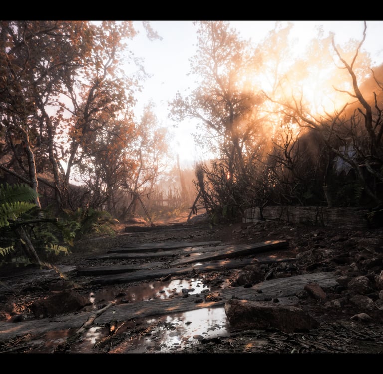The atmosphere of the game is very dark and dreary, but it still has bright moments, scenic views, and beautiful landscapes. One moment you’re in a burnt, smoke-filled area with the glow from fire being the only light source, and the next you’re traveling across a path with greenery and golden rays filling the area around you. It’s very fitting for a story filled with darkness while the protagonist tries to find the light within herself.