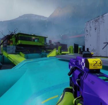 But what I really love about this visual style is how you will see a picture of this game and go, "oh yeah, I know exactly where that's from." And that's awesome. In a world where we just don't get that much differentiation between games' artistic motifs, Marathon has done an absolutely stellar job at making something really unique. Another thing to note is that in the alpha build, a lot of the colors, the lighting, and the general aesthetic and vibe of the maps were very flat. That is something that has been upgraded to an eleven out of ten in the full release. The general ambiance of the incredible vistas on a map like Outpost, or traveling through Perimeter and Dire Marsh with their reflections and fog, is incredibly atmospheric. You really feel like you're on this hostile alien planet that's out to kill you, yet at the same time, you can't really help looking around and thinking, wow, this is actually kind of gorgeous in a sick, twisted kind of way.