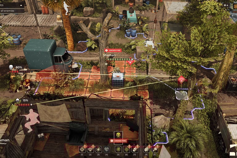 Everything depends on a familiar action point system. Where if you move too far you won’t be able to take another action that turn. So deliberate and tactical movement is a must to really take advantage of the environment. At times it feels like the U.I. may not convey all that well that a specific move is going to spend all of your action points. I often found myself constantly double checking a movement's cost, especially moving to different levels. Field hazards like explosive barrels also play a key role and can really give you the edge in a combat scenario if taken advantage of properly. The various types of cover are also important to keep in mind. Wooden structures can be blown apart while metal can give you a solid defensible position.